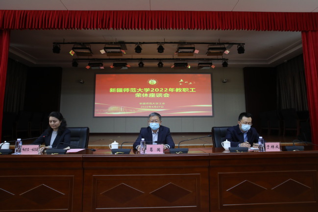 座谈会上,于祥成宣读了《致退休教职工的一封信》,原纪律检查委员会副书记阿巴斯·买买提、原体育学院教师沈林作为退休教师代表发言,校领导为退休教职工赠送荣休纪念册。