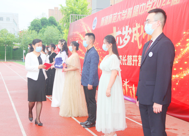 5月8日上午,玩滚官网附属中学在操场举行以“绽放青春筑梦想 感恩家国勇担当”为主题的“2022届十八岁成人礼暨生命成长营开营仪式”。附属中学党委书记吕志新,副书记、校长杨艳,副书记、纪委书记丁占军,副校长李雁飞、初峰山、陈军、权建国,家长代表杜献华女士,部分中层干部及全体高三年级师生参加了此次仪式。