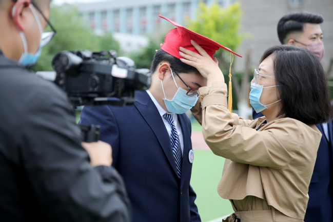 附属中学党委副书记、校长为高三学生代表发放《中华人民共和国宪法》