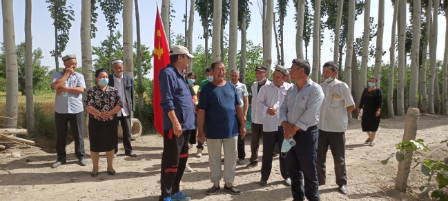 春未尽,夏初临。今年5月是第41个民族团结教育月。为深入贯彻落实习近平总书记关于加强和改进民族工作的重要思想,营造各族群众共同团结进步,繁荣发展的良好氛围,5月27日,亚喀艾日克村党支部联合工作队党支部在种植户唐子雄的核桃园里举行“铸牢中华民族共同体意识、同心同德共发展”主题党日活动。活动由亚喀艾日克村党总支副书记、工作队党支部书记阿不拉·玉素甫主持,全体党员参加活动。