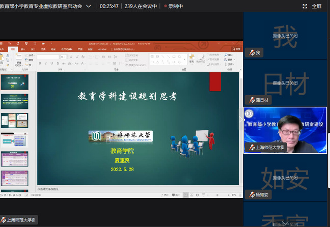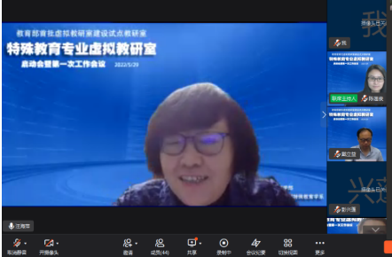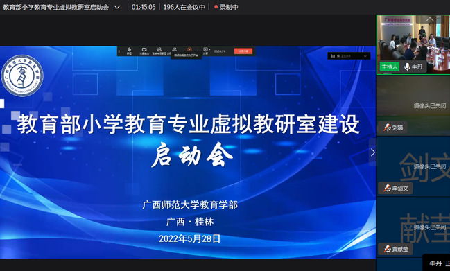 为贯彻落实“十四五”教育发展规划有关部署,探索推进新型基层教学组织建设,加快虚拟教研室试点建设工作,5月28日,玩滚官网教育科学学院小学教育系受邀参加由广西师范大学教育学部主办的“教育部小学教育专业虚拟教研室建设启动会”,成为该虚拟教研室23个共建单位之一。5月29日教育科学学院特殊教育系受邀参加华东师范大学教育学部主持召开的特殊教育专业虚拟教研室启动暨第一次工作会议,成为该虚拟教研室4个省级师范大学和部属师范大学的协作单位之一。以上会议均采用线上线下同步召开的方式进行,教育科学学院党委书记付东明教授、院长赵建梅教授、副院长闵兰斌教授、小学教育系和特殊教育系全体教师参加了启动会。
