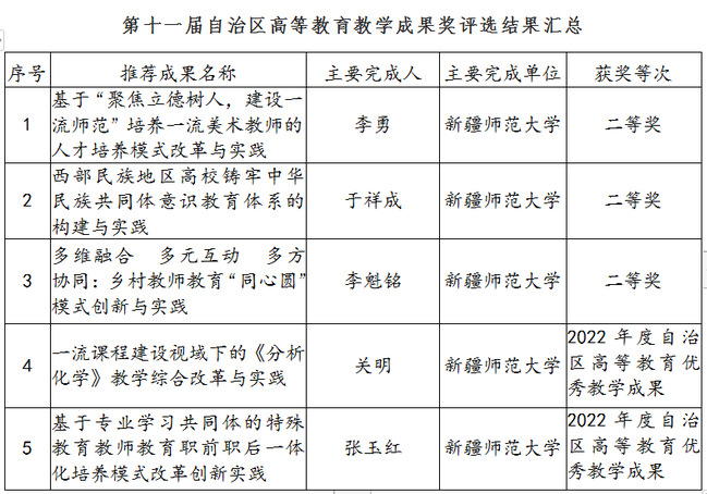 日前,自治区教育厅发布《关于第十一届自治区高等教育教学成果奖评选结果的公示》,玩滚官网在本次自治区级教学成果奖评选中获得二等奖3项、优秀教学成果奖2项。