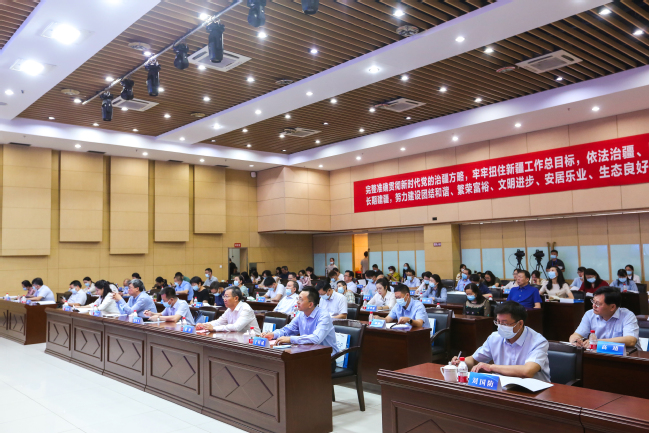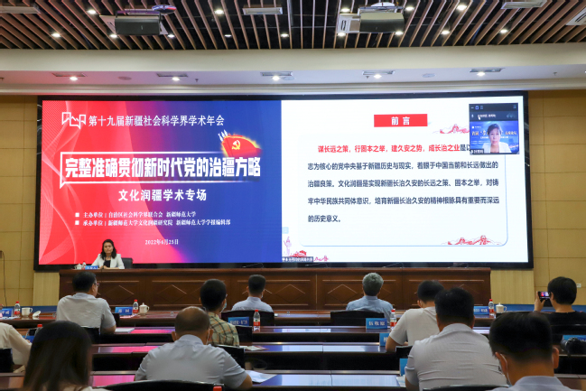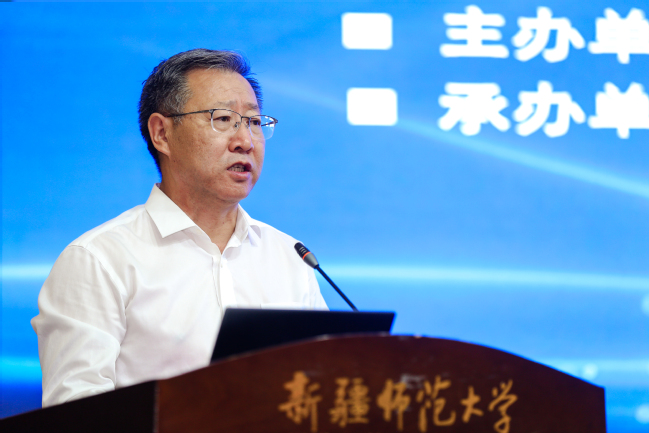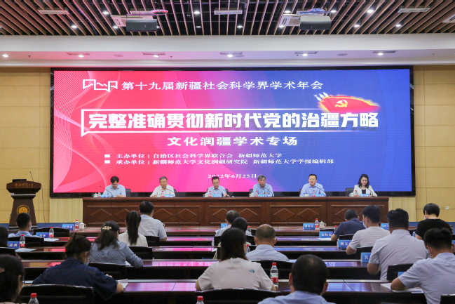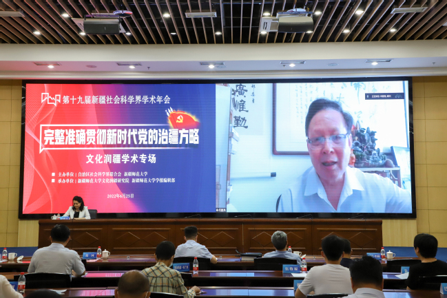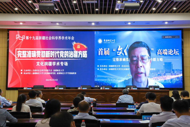 6月25日,第十九届新疆社会科学界学术年会“文化润疆”学术专场暨玩滚球的十大正规平台首届“文化润疆”高端论坛在玩滚官网举行。自治区社科联常委、秘书长刘环玉出席会议并讲话,校党委副书记、副校长于祥成主持会议,校党委书记葛国和中国社会科学院学部委员、中国边疆研究所所长、“新疆智库”办公室主任邢广程研究员分别致辞。