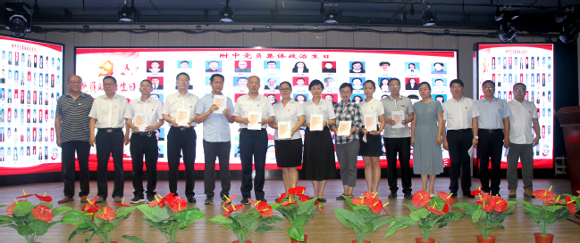活动仪式上,附属中学党委还为65名党员庆祝“政治生日”,赠送了红色经典书籍。同时为附属中学教师藤遥颁发了由中共中央组织部出具的大额党费收据证书,这是附属中学首位大额党费缴纳者。藤遥于2021年7月建党100周年之际,向学校缴纳大额党费1000元,她以实际行动践行人民教师的初心、使命和担当。