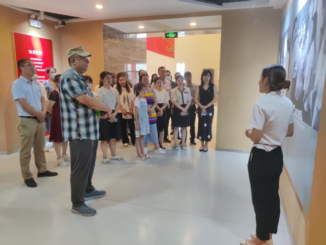 全体党员教师来到了五家渠爱国主义教育基地、党员党性教育基地——知青纪念馆、亮剑团史馆,在支部党龄最长的党员带领下,全体党员教师重温入党誓词,随后开始参观。一楼是知青纪念馆,这里真实记录了20世纪60-70年代,来自上海、天津等地的广大知识青年积极响应党和国家的号召,来到新疆生产建设兵团,支援边疆建设的历史。他们冒严寒、战酷暑,开荒造田、挖渠饮水、修路架桥,奏响了一曲曲惊天动地、感人肺腑的壮丽凯歌,为新疆的开发建设做出了历史性贡献。跟随讲解员的脚步,大家来到二楼亮剑团史馆,馆内以史实和史料为根据,以图文与实物相结合的形式,真实记录了一〇三团七十多年的历史进程,集中展现了以王近山将军、特级战斗英雄杨保孝等几代蔡家湖人保卫边疆的兵团精神和“亮剑”精神。