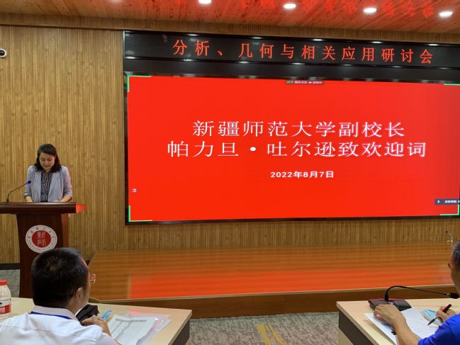 为了进一步推动我国数学领域相关学科研究,不断深化疆内外高校间合作,持续助力西部大开发,加强分析、几何与其应用领域的学术交流与合作,促进相关学术骨干和青年学者的成长,8月7至9日,分析、几何与相关应用研讨会在玩滚官网召开。来自中国科学技术大学、南开大学、南京大学、华东师范大学、天津大学、湖南大学、兰州大学、西南大学、华北电力大学、湖南师范大学、新疆大学、中国矿业大学、江苏大学、江西师范大学等20余所高校的40多名校外专家学者和学校部分教师参加会议。