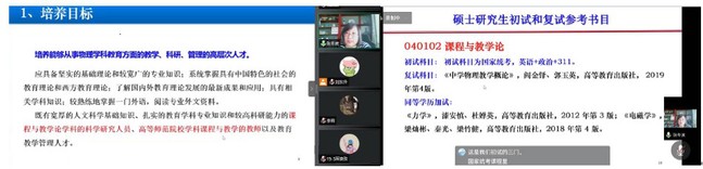 活动中,刚刚获得全国创新讲课大赛二等奖的课程与教学论学科负责人张冬波教授作为学位负责人代表,向大家介绍了本方向的培养目标、就业去向和未来前景,并详细地讲解了初试及复试的课程及参考书目。