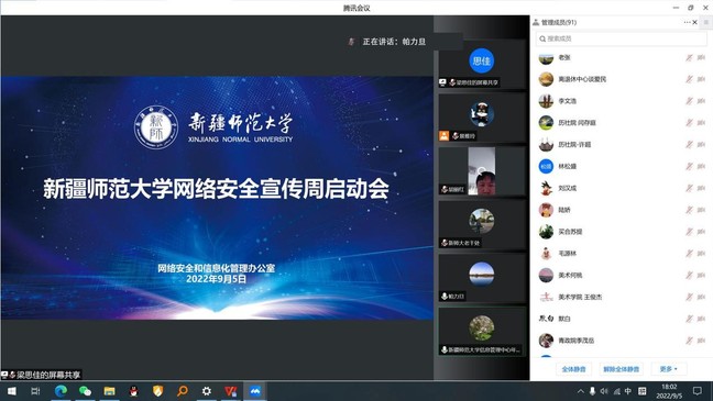 9月5日下午,玩滚官网2022年网络安全宣传周活动以线上形式正式启动。本届宣传周活动以“网络安全为人民 网络安全靠人民”为主题,启动会由学校网信办主办。校党委常委、副校长帕力旦·吐尔逊出席启动会并讲话,宣布玩滚球的十大正规平台2022年网络安全宣传周活动启动。网信办主任年梅主持启动会,各学院各部门处级干部、全校网信专员和网信办工作成员共100余人参加会议。
