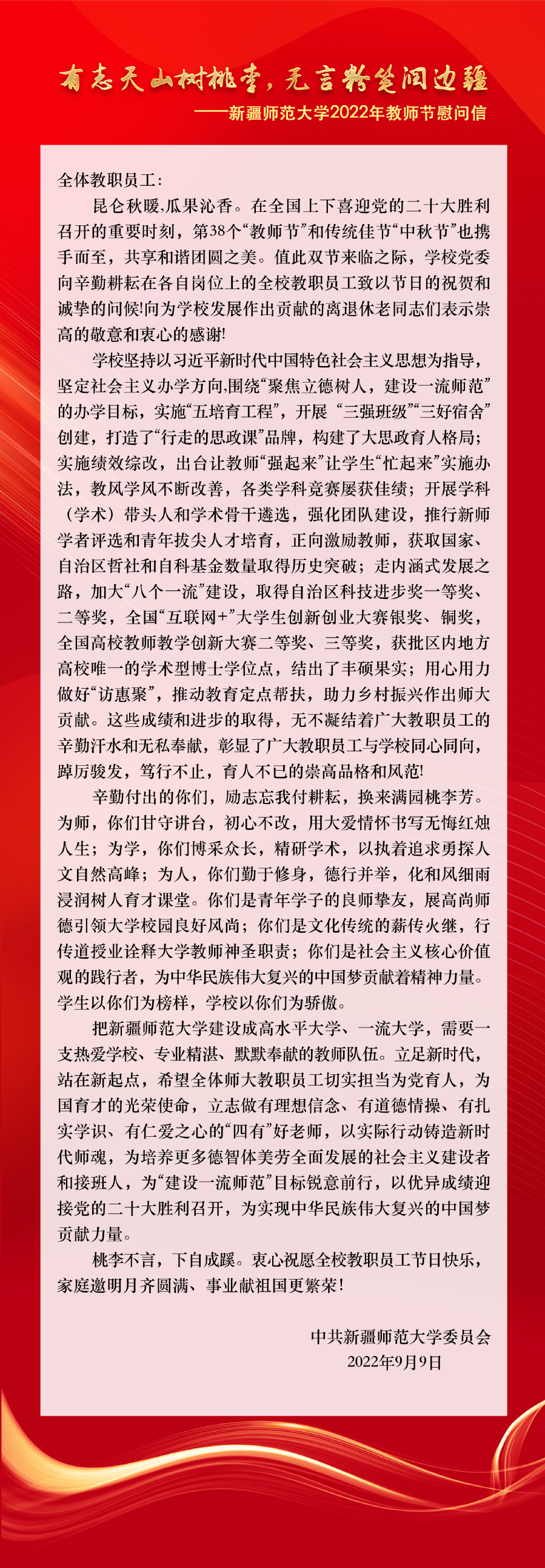 有志天山树桃李,无言粉笔润边疆 ——玩滚球的十大正规平台2022年教师节慰问信