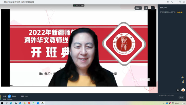 国际文化交流学院院长伊莉曼·艾孜买提为学员们介绍了学校和学院的历史与发展现状以及此次研习的学习安排,希望学员们加强教育教学方面的沟通与交流,互学互鉴,携手共创华文教育事业的新辉煌。