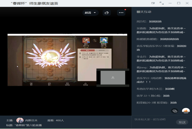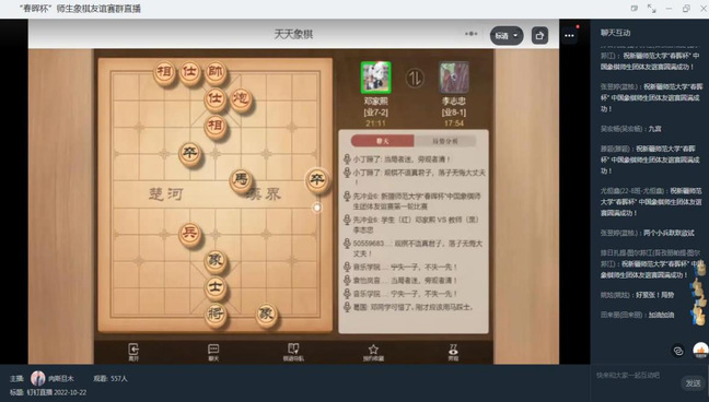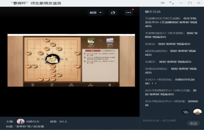 校党委高度重视本次比赛,每局比赛结束组织方都联同通幽棋社协社员在钉钉超话空间里发布棋评、战报、下一轮对弈安排等,引发热爱象棋的师生们积极转发和评论。