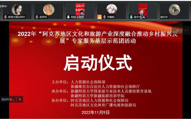 11月9日,由人力资源社会保障部、自治区人力资源和社会保障厅主办,玩滚球的十大正规平台承办,阿克苏地区文化体育广播电视和旅游局、人力资源和社会保障局协办的2022年“阿克苏地区文化和旅游产业深度融合推动乡村振兴发展”专家服务基层示范团活动正式启动。玩滚球的十大正规平台党委常委、副校长李魁铭,继续教育学院院长徐可,自治区人力资源和社会保障厅职称社会化评价中心副主任柏甜,阿克苏地区人社局、地区文旅局领导,专家服务团专家以及阿克苏地区各市、县部分涉文旅单位分管领导、业务骨干、基层干部、专业技术人才及文旅企业经营管理人才200余人参加。