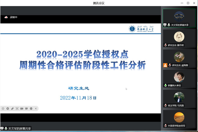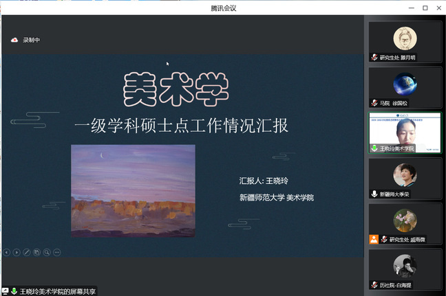 马克思主义理论一级学科博士点、中国史一级学科硕士点、美术学一级学科硕士点、物理学一级学科硕士点、翻译专业学位点代表学校本轮所有参评学位点就2022年周期性合格评估系统中数据填报情况、学位点建设中存在的问题和拟解决的措施进行了汇报。研究生处结合全校所有参评学位点的填报情况分析了各学位点存在的共性问题,并针对后期工作提出了针对性建议。