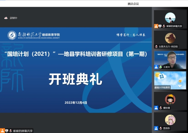 12月4日,玩滚官网在线启动了第一期“国培计划(2021)”——地县学科培训者团队研修项目,涉及小学语文、小学英语、初中语文、初中英语4个学科,由自治区“国培计划”项目执行办公室(继续教育学院)承训。培训采取小班化同步在线120学时的形式进行,参训学员共计180人。