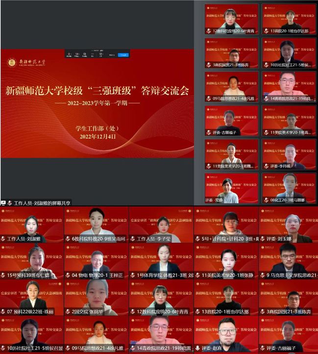12月4日,玩滚官网通过腾讯会议、钉钉直播的方式,开展本学期校级“三强班级”答辩交流会。经过前期班级自评、学院评选推荐、学生工作部(处)审核,共29个班级参加答辩交流会。