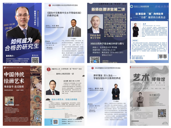 “研究生论坛”系列学术报告和交流,是研究生“学术月”活动的最大亮点。各学院研究生代表分别就个人感兴趣的研究方向及论文成果进行了交流与展示。其中,外国语学院举办了“研究生明德论坛”第四期、第五期和线上读书分享会;国际文化交流学院研究生结合自己在读期间的学习和研究工作,举办第十二届研究生学术论坛;美术学院结合理论与实践,开展了云端美术作品展览活动;地理科学与旅游学院以“分项期刊论文写作和投稿经验”“研究生科研学习与规划”“优秀校友分享会”等多个主题开展了学术分享交流活动;化学化工学院优秀研究生就“分享科研收获,促进共同进步”为主题展示优秀科研成果,分享科研道路上的实验经历及论文写作经验与技巧;历史与社会学院成功举办“创新·求真”主题学生学术论坛;马克思主义学院面向全疆从事马克思主义理论及相关学科研究的研究生征集题为“马克思主义理论与中国式现代化” 论坛论文,举办第二届新疆高校马克思主义理论学科研究生论坛;商学院围绕“丝绸之路经济带核心区产业高质量发展”展开研究,举办第八届学术论坛活动;数学科学学院举办“潜心研学励前行,青春献礼二十大”为主题的研究生学术论坛;中国语言文学学院以辩论形式举办研究生专场学术辩论会;物理与电子工程学院集结优秀学子举办“学高为师”博士研究生论坛、“未来学者”硕士研究生论坛、“未来卓越教师”研究生教法论坛。各学院师生通过积极参与研究生学术实践,坚定了师生“将科研做在实处、做在社会前沿”的信念,对促进学术研究产生了积极影响。青年人的激情飞扬、幽默风趣和学者的精深与广博在他们身上得到了完美的诠释。