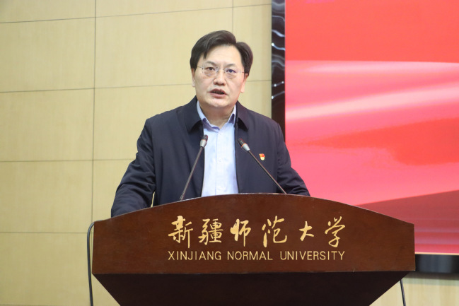 张进对2022年学生工作进行总结并表示全体学工人将牢记党委期盼、学工使命、学生向往,持续发力、久久为功,不断绘制新师学工最大同心圆,不断凝练学生工作的广度高度深度温度,不断培养学生向真向善向美向上。