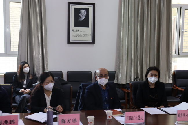 调研开始前,心理学院党委书记许尔湘就学院成立2周年来整体建设和发展情况做了介绍。院长买合甫来提·坎吉就学院现状、“十四五”发展规划推进情况、存在的问题做了详细汇报。