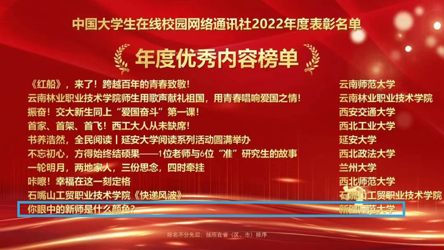 作品《你眼中的新师是什么颜色?》入选2022年度优秀内容榜单(全国共100篇作品入选)