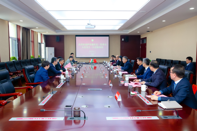 2月23日上午,塔吉克斯坦共和国驻华大使萨义德佐达·佐希尔一行到访玩滚官网,自治区外办副主任孙健、自治区教育厅副厅长李楠,玩滚球的十大正规平台党委书记葛国,党委副书记、校长吾满江·艾力,党委副书记刘俊,党委常委、副校长帕提曼·吐尔逊陪同。