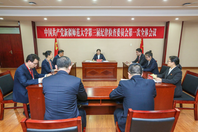 蒋方珍同志在表态发言中表示,将旗帜鲜明讲政治,强化学习练本领,履职尽责担使命,敢于斗争促发展,全面从严带队伍。在自治区纪委和校党委的坚强领导下,学校新一届纪委班子将聚焦主责主业,深入学习领悟党的二十大精神,贯彻落实中央纪委二次全会和自治区纪委十届三次全会精神,与学校党委同向发力,为建设高水平“一流师范”保驾护航。