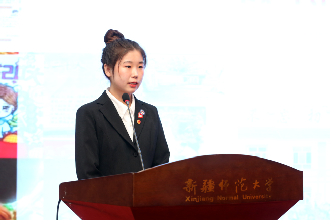 随后,陆娇介绍了学校“学雷锋志愿服务”系列活动情况,张进介绍了“新师朋辈学习互助”计划相关安排。马克思主义学院思想政治教育专业20-3班学生曾秋月作为“新师朋辈学习互助”计划志愿者代表分享了她服务大学生们的故事,数学科学学院数学与应用数学20-1班学生李思璇作为“云云计划”项目志愿者代表分享了她服务中小学生们的故事,马克思主义中国化研究专业2021级研究生周春燕作为“青助社区”项目志愿者代表分享了她服务社区小朋友们的故事。