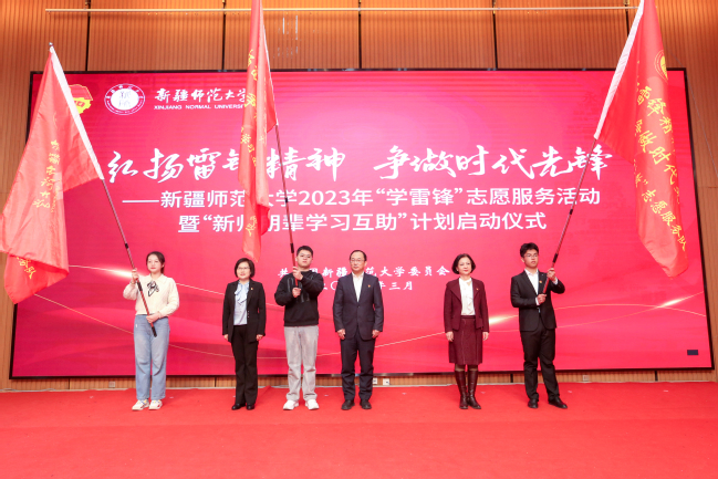 2023年是毛泽东等老一辈革命家为雷锋同志题词60周年。为深入学习贯彻落实党的二十大精神,贯彻落实习近平总书记对深入开展学雷锋活动的重要指示精神,在第24个“中国青年志愿者服务日”到来之际,3月4日上午,校团委在温泉校区举办“弘扬雷锋精神 争做时代先锋”——玩滚球的十大正规平台2023年“学雷锋”志愿服务活动暨“新师朋辈学习互助”计划启动仪式。校党委副书记刘俊,党委常委、副校长帕提曼·吐尔逊,自治区团委大学生志愿服务西部计划办公室副主任赵艳红,学生工作(部)处处长张进,校团委书记陆娇,学府社区党总支书记赵岚,师大社区党总支书记喻哲,各学院党委副书记、分团委书记及志愿者代表出席启动仪式。仪式由校团委副书记王俊淇主持。