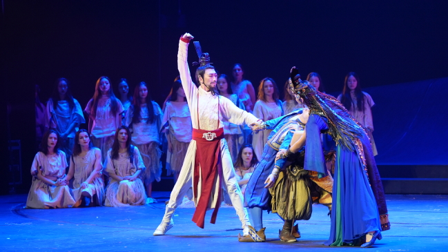 舞剧《张骞》以张骞出使西域的故事为蓝本,展现了中华民族坚毅、忠贞、真挚、信义的优秀品格和坚定信念。舞剧全篇通过“授节”“守节”“奉节”“使节”四个篇章演绎了张骞“凿空之旅”。一路上他经历了严酷的风霜雨雪,绮丽的风土人情,难熬的囚禁幽困,但他始终没有忘记自己的使命。全剧展现出各民族交往交流交融的生动场景,有欢笑,有泪水,有个人的小幸福,更有家国的大情怀。玩滚官网师生认真观看演出,深受感染,在谢幕环节不禁起立为演员鼓掌。