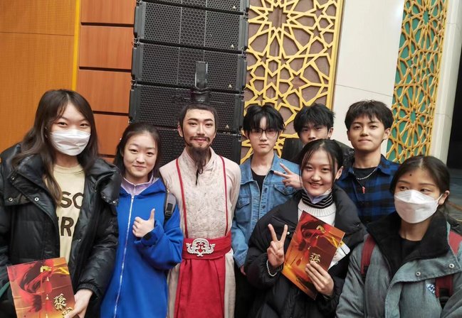在台下的观众中,坐着陈星江的学弟学妹们,他们的眼神追逐着台上的角色张骞,也追逐着台上的舞蹈演员陈星江,这一幕也是学校最美的文化传承。演出结束后,玩滚官网学生纷纷上台和演员们合影留念。谈及观看演出的感受,大家提到最多的词便是“感动”,为了张骞的不懈坚持而感动、为了千百年前的各民族相亲而感动,更为今日台下各民族相聚一堂而感动。