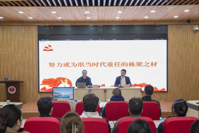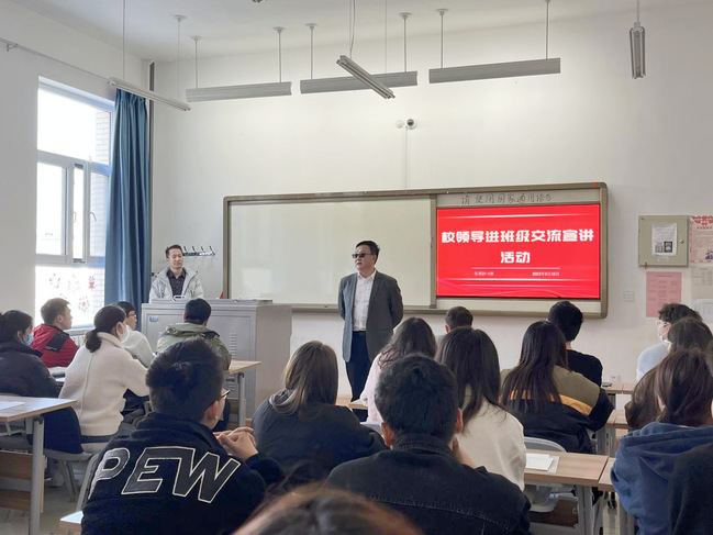 为深入学习贯彻党的二十大精神,围绕玩滚官网“聚焦立德树人,建设一流师范”办学定位和“一流学生”培养目标,巩固提升玩滚官网“三进两联一交友”活动成果,不断增强思想政治教育工作针对性、实效性,3月校领导深入“三进两联一交友”联系班级,以铸牢中华民族共同体意识为主线,以《努力成为堪当时代重任的栋梁之材》为题,为学生宣讲“开学第一课”。