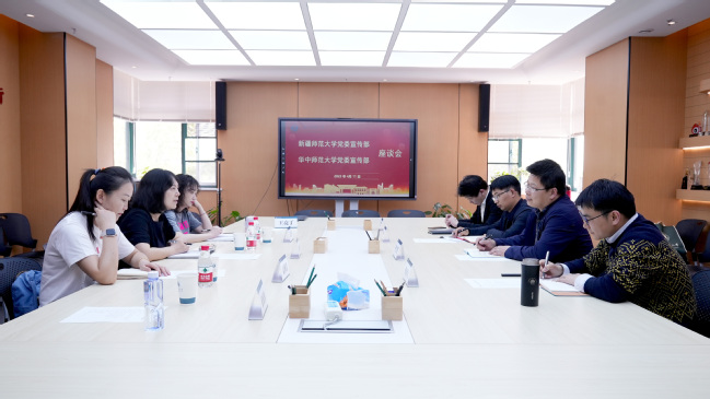 华中师范大学融媒体中心于2019年入选教育部首批“教育融媒体建设试点单位”,华中师范大学党委宣传部副部长钟文锐带领我校党委宣传部一行首先参观了华中师范大学融媒体中心。参观过程中,钟文锐介绍了融媒体中心的建设背景、建设过程及建设成效。在随后的座谈会上,两校围绕融媒体平台内容生产机制,构建大思政工作体系,网络舆情监测、研判、处置、引导机制建设,统筹推进大学文化建设等方面的经验做法进行了沟通交流。