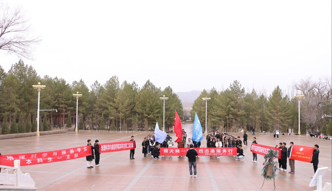 4月9日,为进一步弘扬优良传统,传承革命精神,鼓励学生积极参加志愿服务,教育引导广大学生党员坚定信念、奋勇担当,不断继承和发扬革命先辈不畏艰难、勇于献身、敢闯敢干、敢为人先的伟大革命精神,在地理科学与旅游学院党委的精心组织下,本科生第一党支部、第二党支部、研究生第二党支部共同与学校“胡杨先锋班”成员徒步12公里至乌鲁木齐市革命烈士陵园开展了“照天烧——忆先烈”志愿服务行活动。