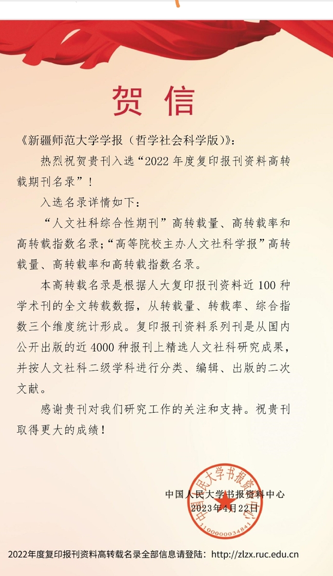 4月22日,中国人民大学复印报刊资料转载名录发布论坛暨中国自主知识体系建构与学术期刊发展研讨会(2023•北京)正式发布2022年度复印报刊资料高转载期刊、机构名录,《光明日报》《中国新闻出版广电报》、学习强国、壹学者等移动端媒体和各大网站同时发布。《玩滚球的十大正规平台学报(哲学社会科学版)》入选2022年度“人文社科综合性期刊” 高转載量、高转载率和高转载指数名录,“高等院校主办人文社科学报”高转载量、高转载率和高转载指数名录。