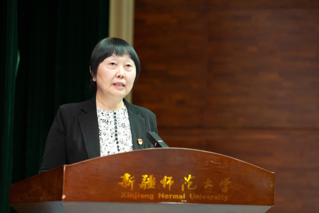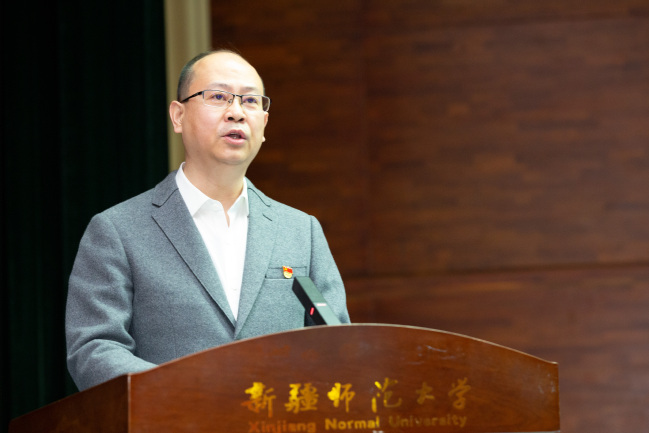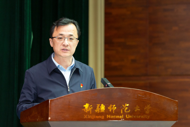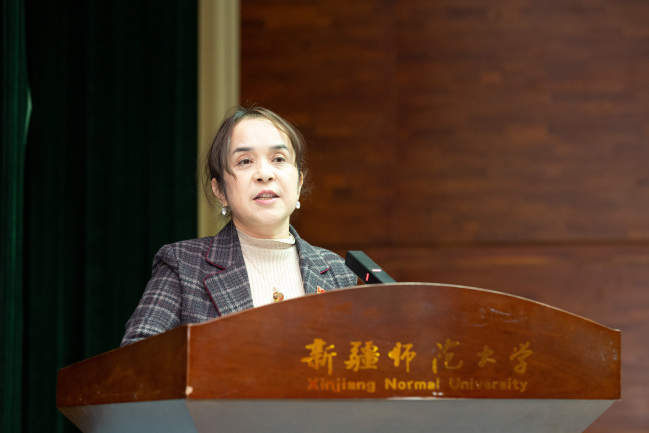 校党委委员、心理学院党委副书记、院长买合甫来提·坎吉发言
