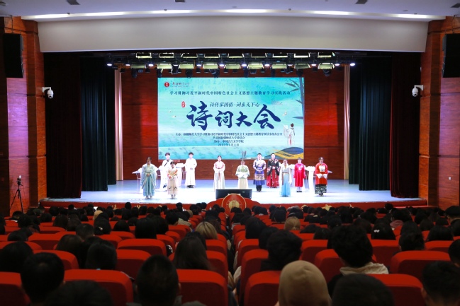 平仄声韵,千年文化薪火;抑扬顿挫,七情点染文墨。“诗传家国情·词系天下心”诗词大会校级决赛完美收官,此次活动不仅传播了千古诗词风采,带领师生领略诗词文化底蕴,在校园里掀起了诵读经典诗文、传承中华文化的热潮,营造了亲近中华经典,继承和发扬中华优秀传统文化的良好氛围,让广大学子感受到中华文化之美,进一步铸牢了中华民族共同体意识,在文化润疆实践中建设中华民族共有精神家园。
