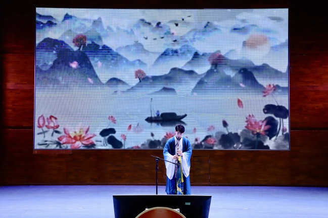 音乐学院的同学们为诗词大会表演了萧独奏《愿情》,舞蹈《渔光曲》,词曲独唱《青玉案·元夕》,民族管弦乐合奏《苏堤漫步》。今夜闻君琵琶语,如听仙乐耳暂明,动听的民乐,曼妙的舞蹈使同学们陶醉在优美的旋律里,沉醉不知归路,为本次诗词大赛渲染绚丽的色彩。