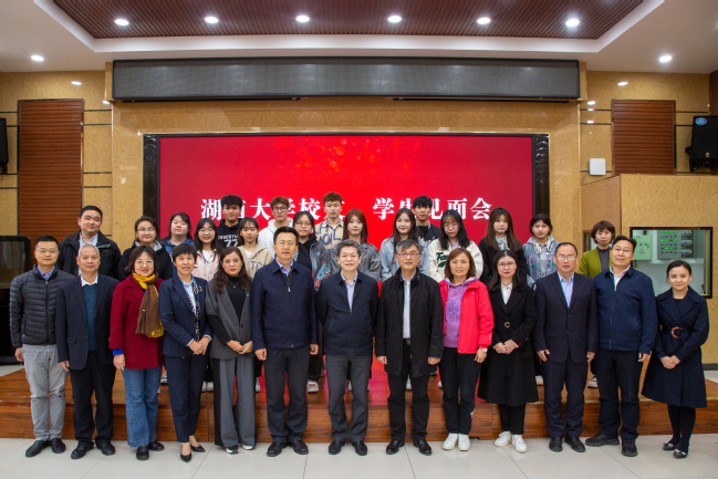 5月4日,湖南大学党委书记邓卫一行来玩滚官网访问,与玩滚官网领导干部进行座谈交流。校党委书记葛国,党委副书记、校长吾满江·艾力,党委副书记、副校长于祥成,党委副书记王志勇,党委副书记刘俊以及党委组织部、学生工作部(处)、人事处、科研处、发展规划处、马克思主义学院等部门和学院负责人参加座谈会。