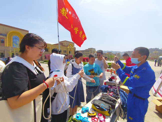 今年5月12日是我国第15个全国防灾减灾日,本次活动的主题为“防范灾害风险 护航高质量发展”。按照自治区教育厅《关于做好教育系统2023年全国防灾减灾日有关工作的通知》要求,为深入推进学习贯彻习近平新时代中国特色社会主义思想主题教育,使玩滚官网防灾减灾宣传活动落到实处,提高师生安全防范意识,增强自救互救能力,玩滚官网联合自治区国防动员办公室、新疆人防科技协会、新疆消防协会、新疆气象学会及新疆蓝天救援队,在温泉校区组织开展了“5·12”防灾减灾日科普宣传进校园活动。校党委副书记王志勇参加并主持本次活动。保卫处工作人员及教育科学学院300余名师生共同参加宣传活动。