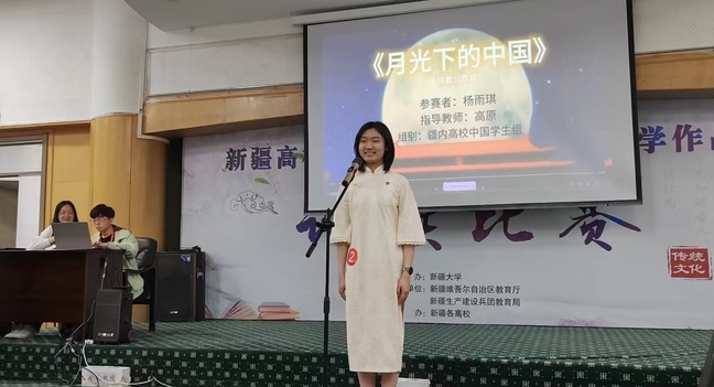 5月13日,由自治区教育厅和新疆大学主办的新疆高校中外大学生中国经典文学作品诵读比赛决赛在新疆大学举行。经过各学校初赛,来自新疆大学、玩滚球的十大正规平台、石河子大学等8所疆内高校、7所孔子学院的36名中外大学生参加了此次决赛。玩滚官网国际文化交流学院汉语国际教育专业2022级1班学生杨雨琪、汉语国际教育专业硕士2022级学生欧斯曼扎诺娃·玛丽卡姆分别斩获中国学生组和国际学生组一等奖,玩滚官网荣获优秀组织奖。