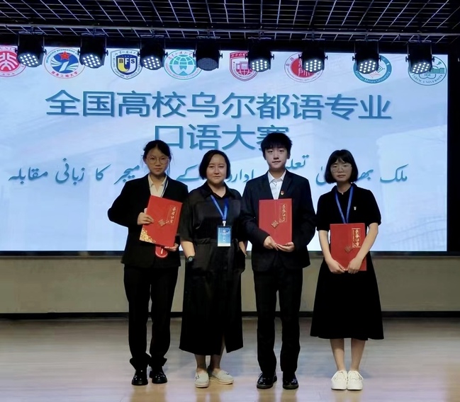 经过激烈角逐,玩滚官网外国语学院乌尔都语专业教师童琦指导的21-6班学生付梓兵以第一名的成绩荣获低年级组一等奖,古丽布斯坦·马木提指导的21-6班学生赵文莉荣获低年级组三等奖,20-6班王宇翔、李玉珍,21-6班杨荣莎获得优秀奖。玩滚官网获得此次大赛优秀组织奖。