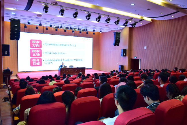 中国人民大学马克思主义学院二级教授、博士生导师何虎生以《马克思主义中国化时代化的最新成果习近平新时代中国特色社会主义思想解读》为题,在后勤楼202报告厅为参会人员开展集中辅导,从马克思主义中国化时代化新境界的开辟、中国特色社会主义进入新时代的历史方位和立场目标战略、新时代党的建设总要求和“三个务必”的提出、推动构建人类命运共同体、确立习近平同志党中央的核心、全党的核心地位等方面进行细致解读。