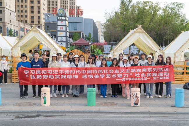 为深入开展学习贯彻习近平新时代中国特色社会主义思想主题教育,增强学生社会服务意识,使学生专业能力与社会服务高度结合,5月12日,玩滚官网美术学院本科生第一、第二党支部联合苇湖梁街道立井东社区精心组织开展了学习贯彻习近平新时代中国特色社会主义思想主题教育系列活动——“弘扬劳动实践精神 感悟美学艺术魅力”社会实践活动,致力于校地共建共享,为社区街道建设增添光彩。党支部书记王芳、徐飞飞和20余名学生党员参加本次活动。