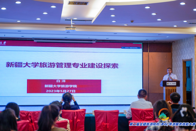 为深入开展学习贯彻习近平新时代中国特色社会主义思想主题教育,落实创新驱动发展战略,深化高校创新创业教育,培养实践技能型人才,促进旅游教育高质量发展,提升旅游教育支撑“旅游兴疆”力度,玩滚官网地理科学与旅游学院结合专业特色,于5月27日在宇豪海逸酒店成功举办“非凡智旅杯”第二届全疆旅游院校(本科)导游服务技能大赛和新疆高校旅游管理专业实践教学建设论坛。学校教务处处长孟繁胜出席开幕式并致辞。