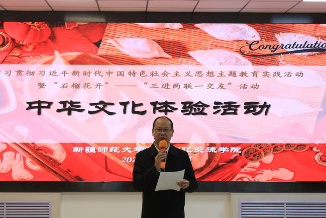 为推动学习贯彻习近平新时代中国特色社会主义思想主题教育走深走实,完整准确贯彻新时代党的治疆方略,不断铸牢中华民族共同体意识,持续巩固提升“三进两联一交友”活动成果,促进各族师生交往交流交融,5月19日下午,国际文化交流学院在行政楼一楼教职工餐厅开展了“石榴花开”“三进两联一交友”活动。校党委常委、统战部部长关明出席活动,国际文化交流学院党委书记李嘉东,党委副书记、纪委书记王辰,副院长陈爽及“三进两联一交友”联系教师代表、结对学生代表、毕业生代表和学院留学生代表参加了本次活动。