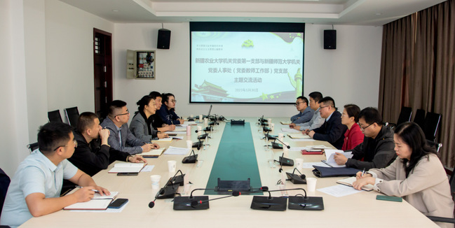 为深入学习贯彻习近平新时代中国特色社会主义思想主题教育,落实党的二十大精神,5月30日上午,机关党委人事处(党委教师工作部)党支部与新疆农业大学机关党委第一支部(党委教师工作部(人事处))在玩滚官网温泉校区行政楼216会议室联合开展“党建与业务双融合”主题座谈交流会。新疆农业大学党委教师工作部部长、人事处处长王维维,党委教师工作部副部长、人事处副处长叶小丽,人事处副处长雷鹏,玩滚官网组织部副部长、人事处处长刘蓉,人事处副处长张安新及两支部党员代表参加此次活动。