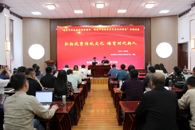 施克灿以《弘扬优秀传统文化 培育时代新人》为题,引经据典,结合习近平总书记关于弘扬中华优秀传统文化重要论述,介绍了弘扬中华传统文化的重要意义、具体内容与途径。施克灿阐释到,弘扬中华优秀传统文化的途径主要包括树立正确的传统文化教育的理念、传统文化教育资源进入课程教材、结合校园文化进行中华优秀传统文化教育、培养一支优秀传统文化的师资队伍、建构传统文化教育的多元支撑体系等方面。最后,他指出弘扬中华优秀传统文化是我们的历史使命与时代责任,培育社会主义核心价值观必须立足中华优秀传统文化,教育改革也必须立足民族文化的根基。