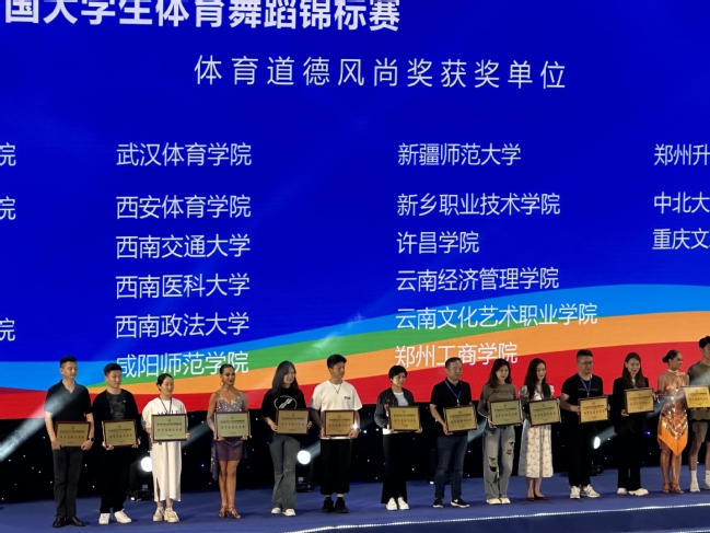 玩滚官网体育舞蹈队由体育学院副院长阿不拉·玉素甫任领队,任奇红担任教练。在中国大学生体育舞蹈锦标赛大学丙B组别中,经过多轮比拼最终有三个组别进入决赛前六名,其中艺术表演舞获得第三名,校园自编舞RCJ获得第四名,校园自编舞RC获得第六名,同时获得“体育道德风尚奖”。