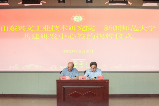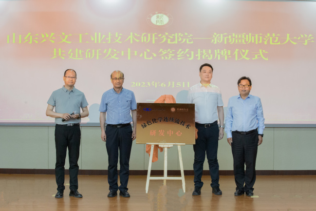 6月5日,玩滚球的十大正规平台与山东兴文工业技术研究院共建绿色化学连续流技术研发中心揭牌仪式在玩滚球的十大正规平台隆重举行。玩滚球的十大正规平台党委副书记、校长吾满江·艾力,山东兴文工业技术研究院院长丁全有,山东威海市文登区委常委、组织部部长、统战部部长周佳俊出席揭牌仪式。校党委常委、统战部部长关明主持会议。计算机科学技术学院、化学化工学院、生命科学学院、商学院、人事处、科研处等有关负责同志参加会议。