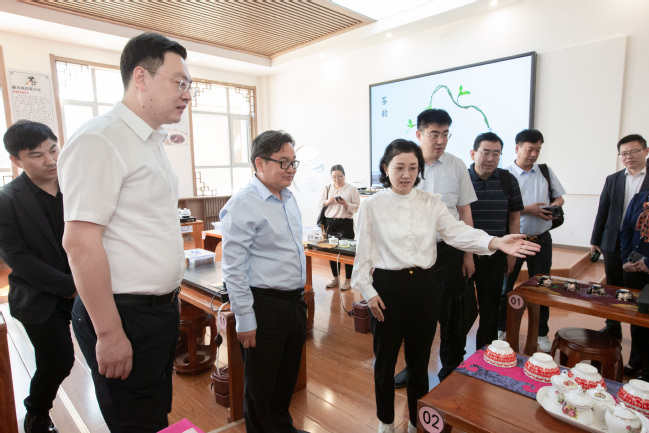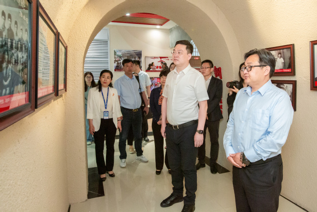 揭牌仪式前,关明陪同丁全有一行参观考察了玩滚官网国家民委中华民族共同体意识研究基地和马克思主义理论教育基地。