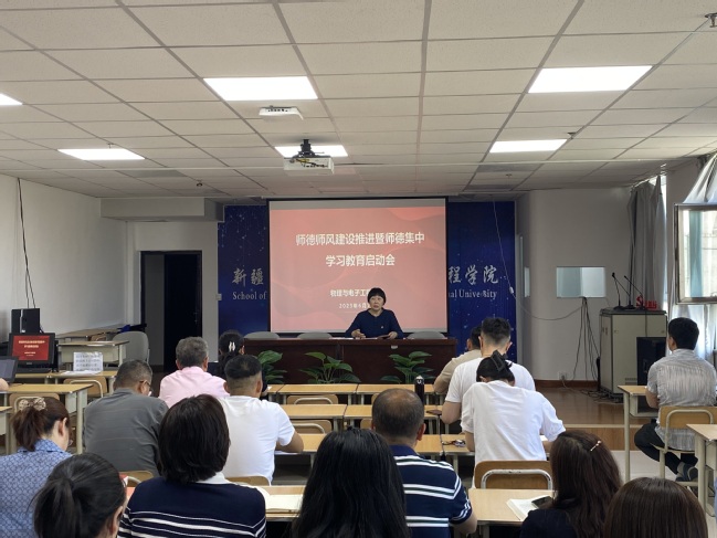 为深入开展学习贯彻习近平新时代中国特色社会主义思想主题教育,认真学习领会习近平总书记关于师德师风的重要指示精神,根据学校师德师风建设工作推进暨师德集中学习教育启动部署会安排,物理与电子工程学院于6月7日组织全体教职工开展开展师德师风建设推进暨师德学习教育活动。物理与电子工程学院党委书记李莉主持会议。